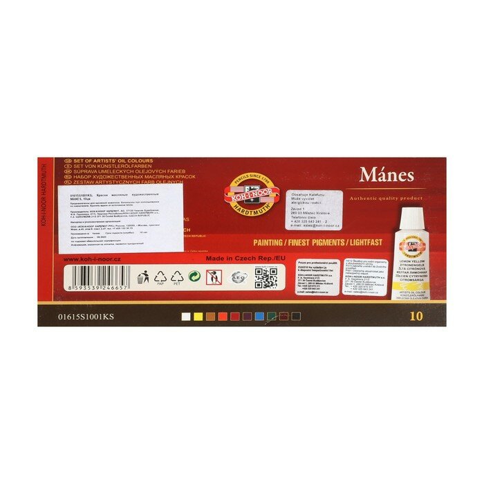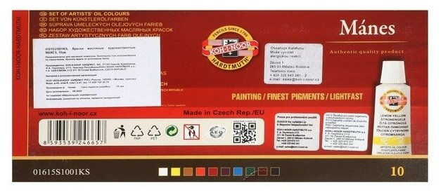Краски масляные художественные Manes в тюбиках 10 цветов KOH-I-NOOR