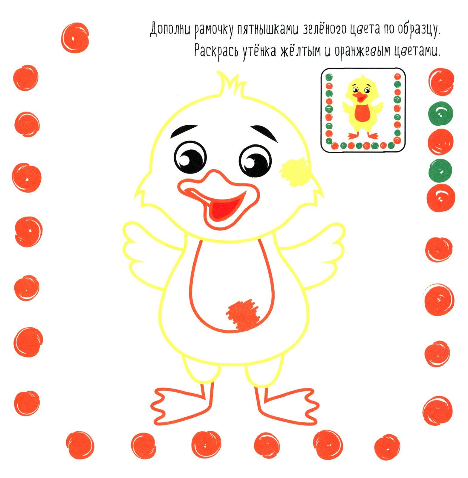 Эта книжка научит вашего малыша различать цвета, рисовать маленькие пятнышки и работать широкими штрихами. Яркие образцы и цветные контуры подскажут ему, какой цвет выбрать.
