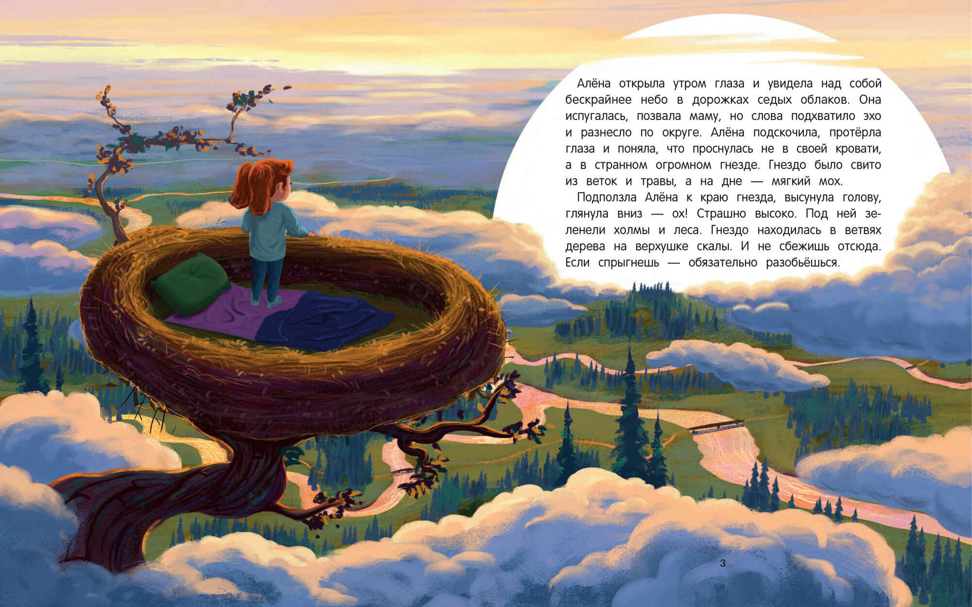 Алёна проснулась утром не в своей кровати, а в странном гнезде на верхушке скалы. Вскоре появился и хозяин гнезда - огромное мохнатое чудовище с крыльями. Не испугаться такого просто невозможно!