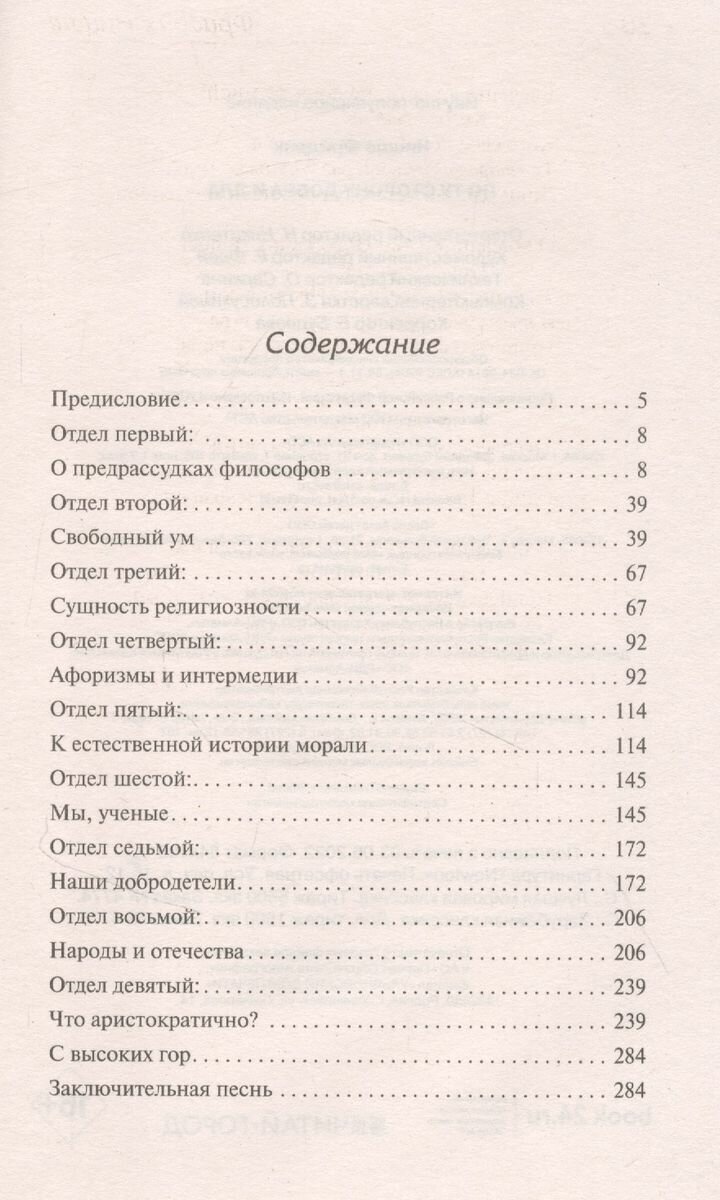 "По ту сторону добра и зла". У меня лично (возможно, что не только у меня) само взросление началось с того, когда я перестал все вещи, поступки, и происходящие в жизни события делить строго на Добро и Зло. Всегда есть что то "по ту сторону..." Поэтому когда я наткнулся на филосовскую одноименную работу от Ницше, то я просто не смог пройти мимо. Заказал, получил, прочёл, теперь делюсь. Да, написано не самыми лёгкими и простыми словами. Некоторые части и тезисы приходилось перечитывать не по одному разу, чтобы понять, уловить мысль автора. Что то понималось легче, что то (скажу честно) понять так и не удалось, либо до сих пор имею сомнения в своей верности трактовки мысли автора. С чем то согласен, с чем то нет (например про то же самое отношение к женщине кажется мне слишком уж прямолобым и избитым). Тем не менее Ницше - признаный гений философской мысли, ни разу не пожалел времени на чтение этой книги.