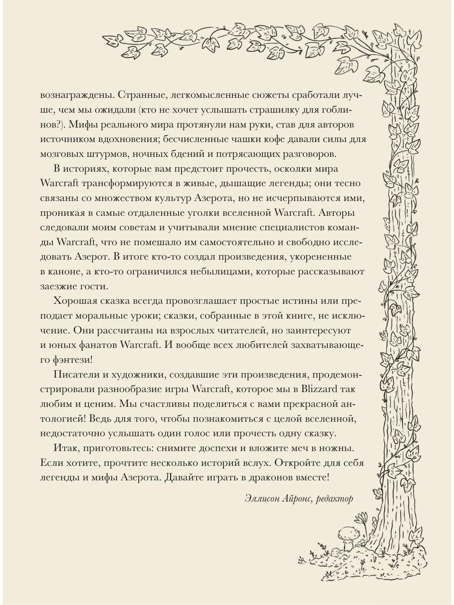 Сила фантазии ощущается в каждом уголке Азерота — от продуваемых ветрами полей Восточных королевств до шумного города Прибамбасск, где разногласия удалось преодолеть с помощью… обычных историй. Уроки, извлеченные из сказок, закалили храбрых героев и помогли им вернуться домой. А истории о героях, в свою очередь, вдохновляют их последователей. Теперь и вы можете устроиться поудобнее, снять доспехи и послушать удивительные рассказы о приключениях.