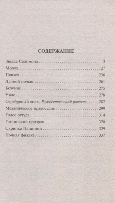 Очень редкий сборник рассказов. Во главе книги рассказ Звезда Соломона, который дополняет множество других, не менее мистических рассказов. Они восхитительны, просто до мурашек. Особо впечатлительным на ночь лучше не читать. При этом восхищает прекрасный русский язык, которым мастерски владеет автор.