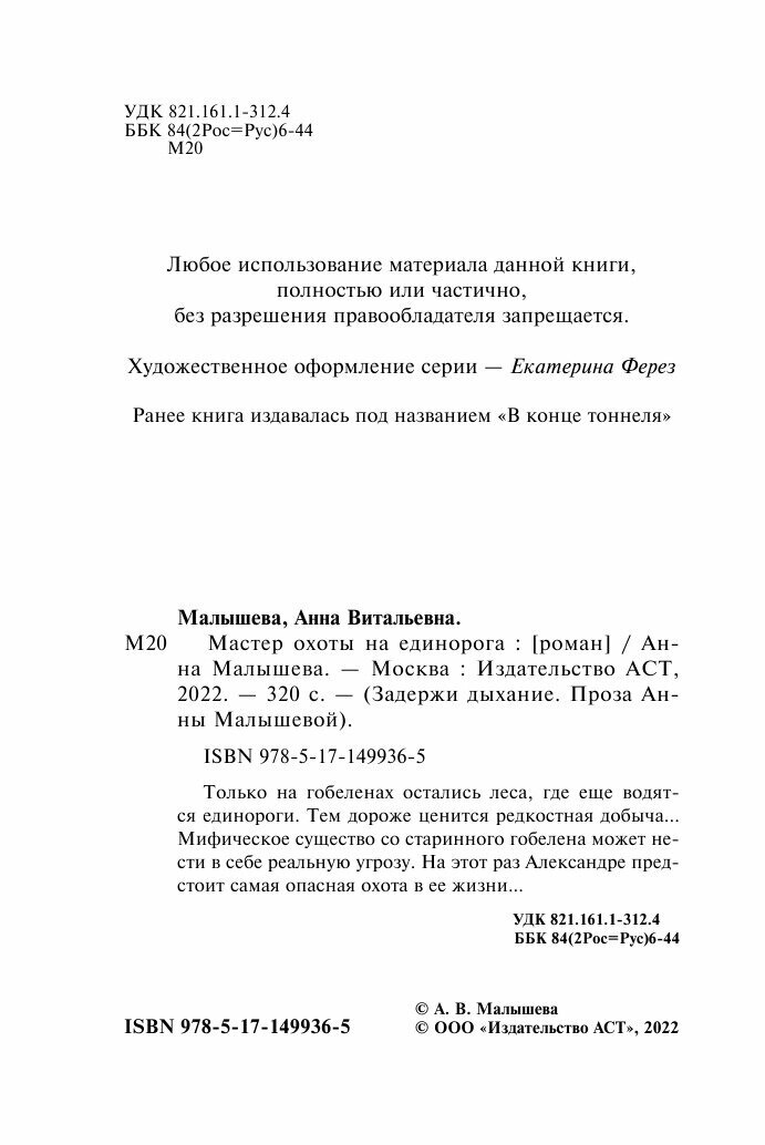 Мастер охоты на единорога (Малышева Анна Витальевна); ИЗДАТЕЛЬСТВО "АСТ", 2022