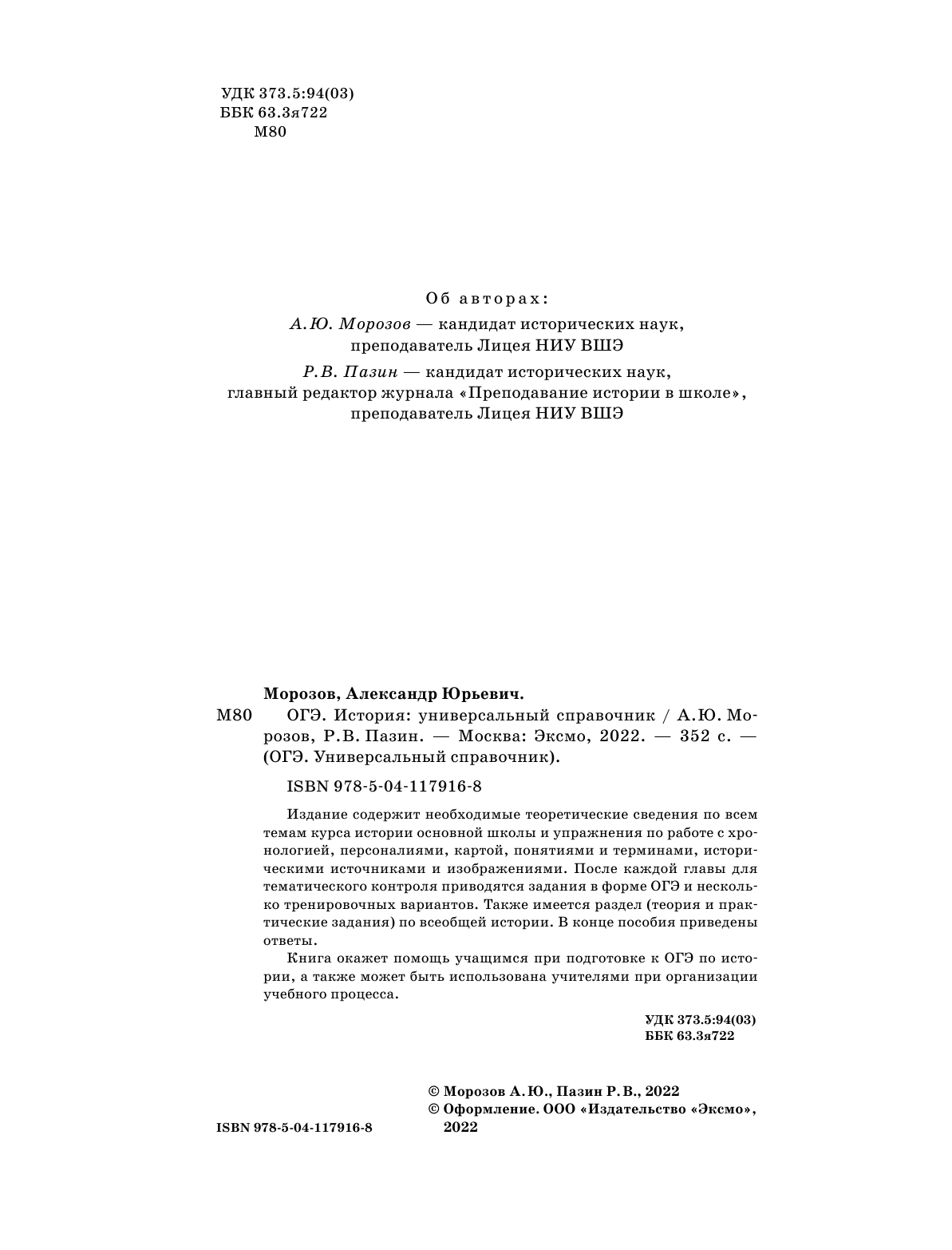 ОГЭ. История. Универсальный справочник (Морозов Александр Юрьевич; Пазин Роман Викторович); ООО "Издательство "Эксмо", 2022