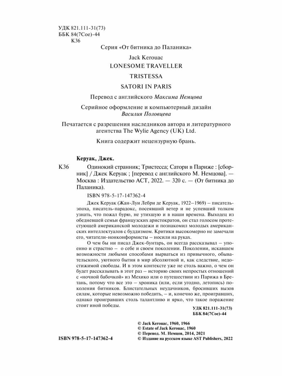 Одинокий странник. Тристесса. Сатори в Париже (Джек Керуак); Издательство АСТ, 1960, 1966