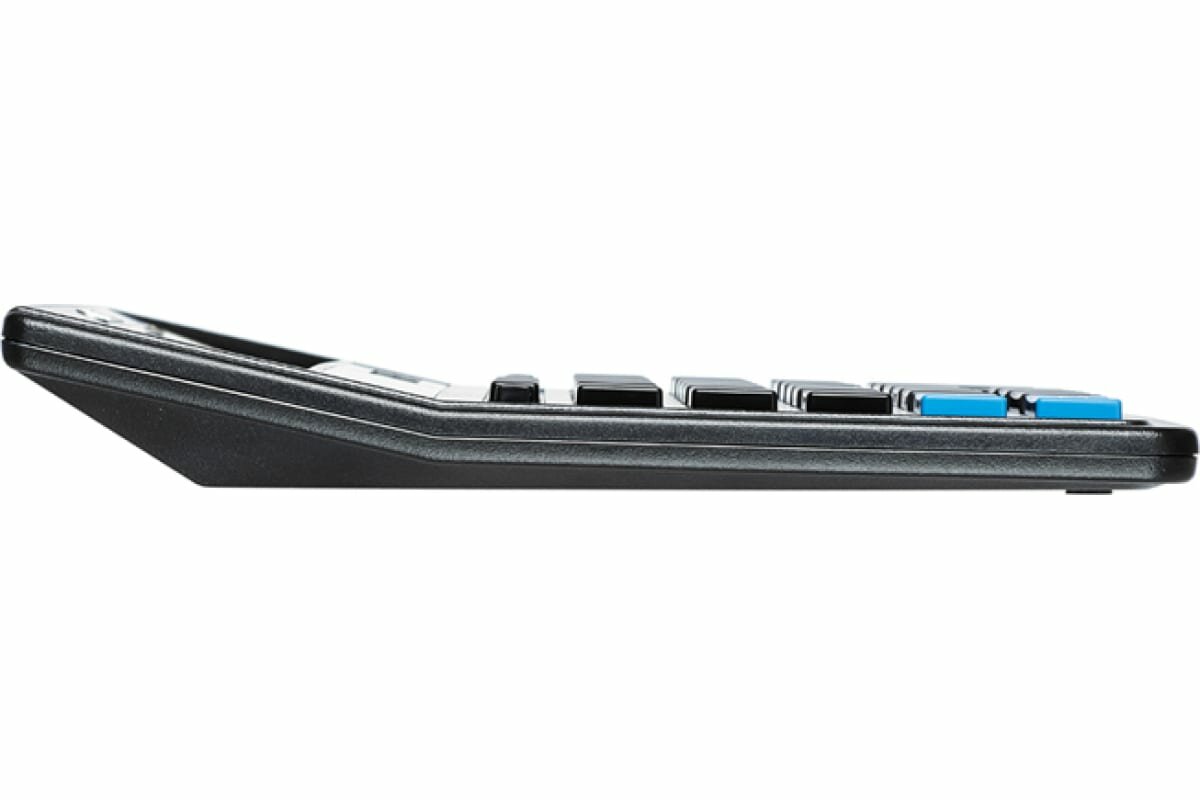 Обычный калькулятор для офисных задач. Подходит для людей с большими пальцами или девчат с маникюром как у Крюгера или Росомахи, т.к. имеет большие кнопки и расстояние между ними.