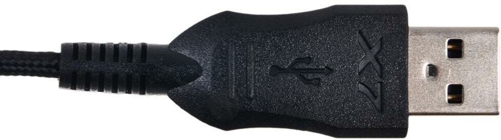 Шершавая поверхность под карбон, ничего не стёрлось: ни кнопки, ни надпись "X7". Боковая выступ под большой палец сделан из ребристой резины, мышь лежит в руке как влитая. Огромный диапазон регулировки DPI, использую 800 точек на дюйм (тёмно-зеленый индикатор), оптимально для меня. Боковые кнопки использую в браузере для возврата назад на предыдущую страницу и перехода на следующую, очень удобно, ложатся прямо под большой палец. Оранжевую кнопку "двойной клик" переназначил на включение проигрывателя, кнопка как раз под указательный палец, нажимается на ощупь. Колёсико работает чётко, очень точно, информативно. Провод абсолютно не тянет никуда, хорошо держит заданную форму.