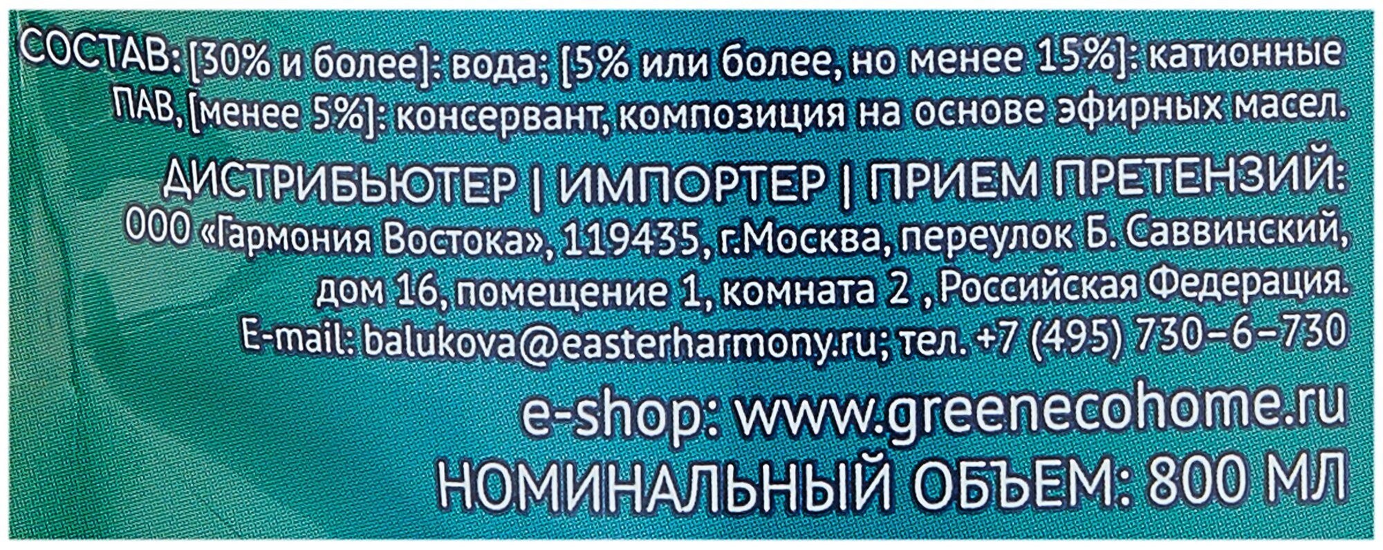 | Состав | пав (соль диалкиламония сложноэфирного типа), ароматические масла, компоненты растительного происхождения, стабилизатор. |