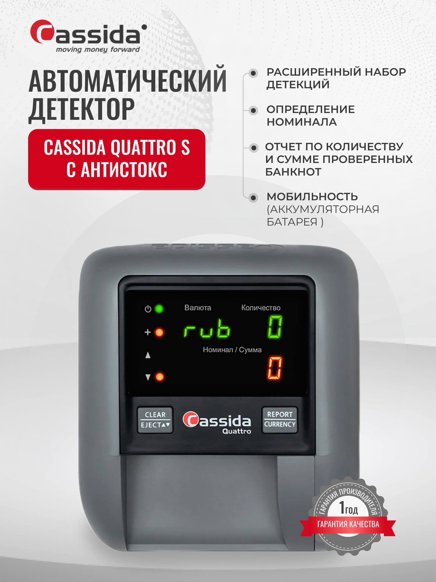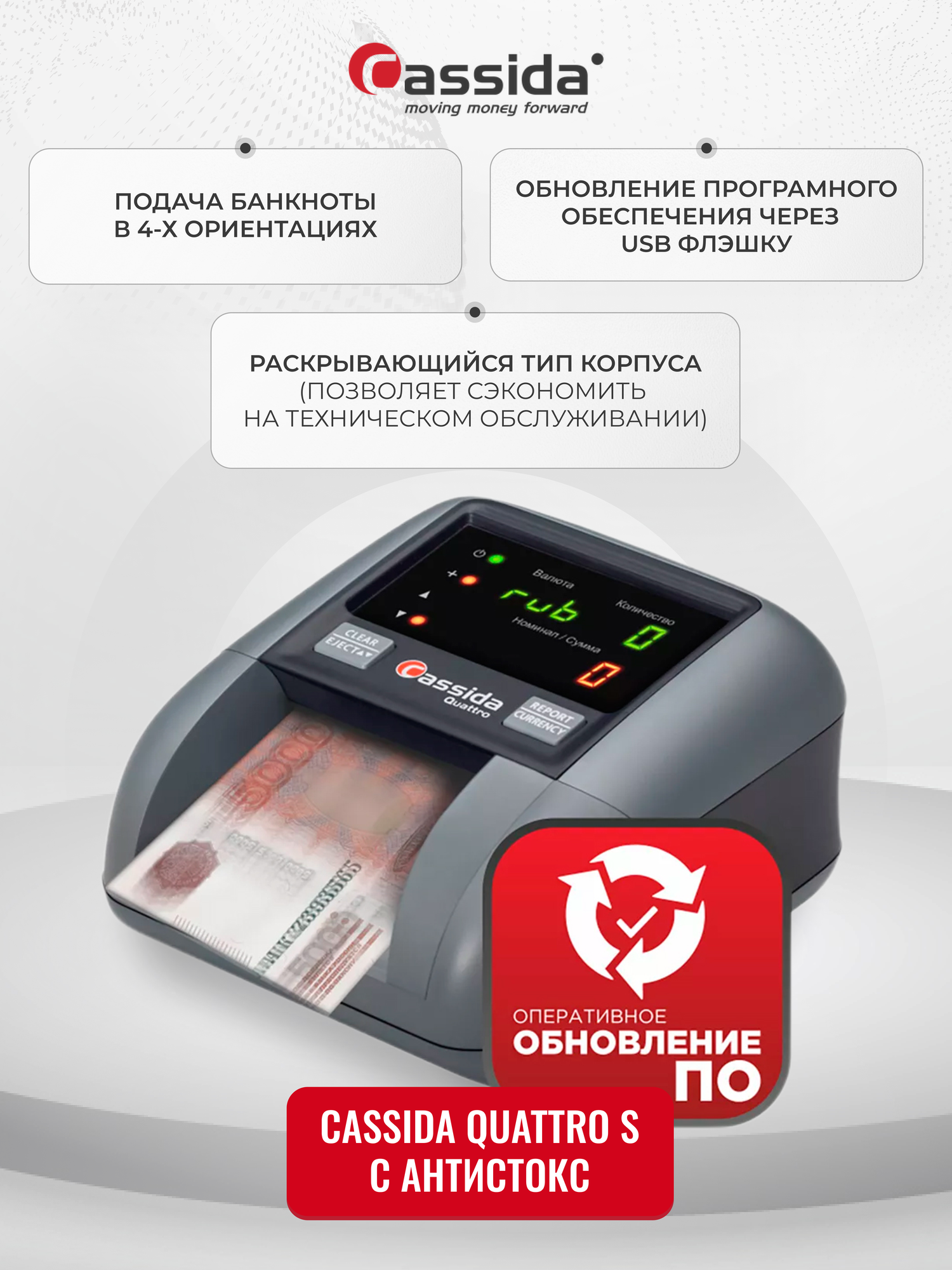 CASSIDA QUATTRO Z И QUATTRO S: ОБЗОР АВТОМАТИЧЕСКИХ ДЕТЕКТОРОВ БАНКНОТ