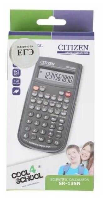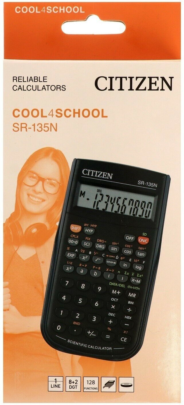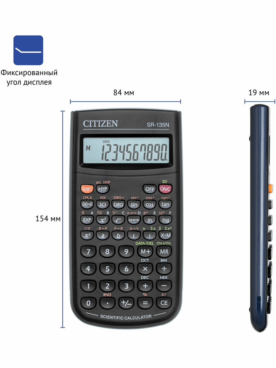 Научный калькулятор Citizen серии SR-135N поможет достигнуть ученикам впечатляющих результатов в учебе. Разрядность: 8 2. 128 научных функций сделают процесс изучения увлекательным и интересным. Питание от батарейки GPA76 (LR44).Размер калькулятора — 84х154х19 мм, вес — 118 г, цвет — черный. Жесткая крышка сохранит калькулятор от повреждений.Модели сертифицирована для использования на ЕГЭ по физике, химии и географии.— разрядность: 8 2;— тип питания — батарейка GPA76(LR44);— подходит для ЕГЭ;— количество научных функций: 128.