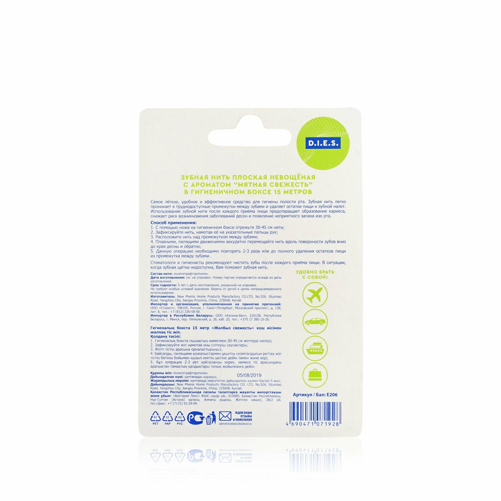 | Полное наименование | Зубная нить D.I.E.S. невощеная мята 15м |