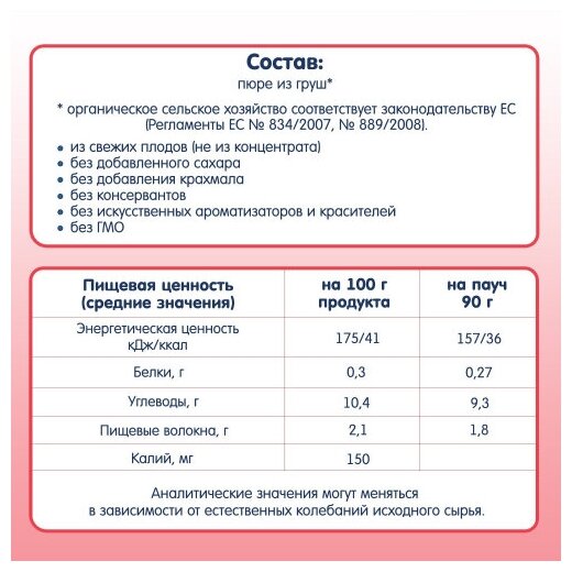 | Состав | Пюре из груши. |