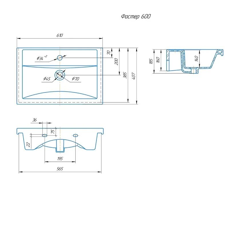 | Ширина раковины | 610.000 |