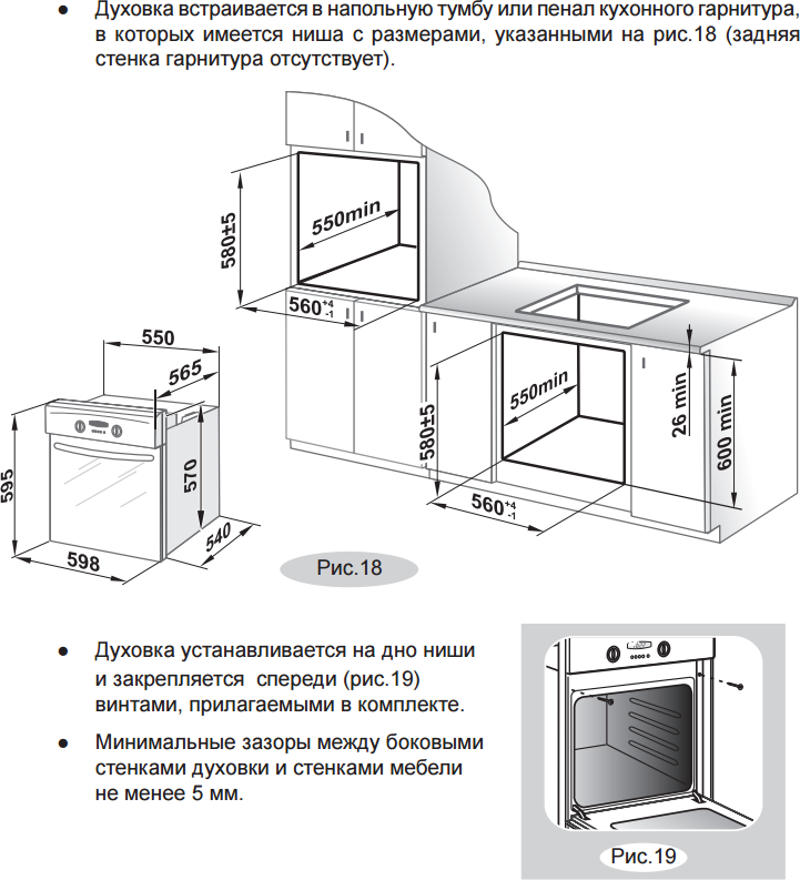 | Размеры ниши для встраивания (ВхШхГ) | 57 x 55 x 54 см |