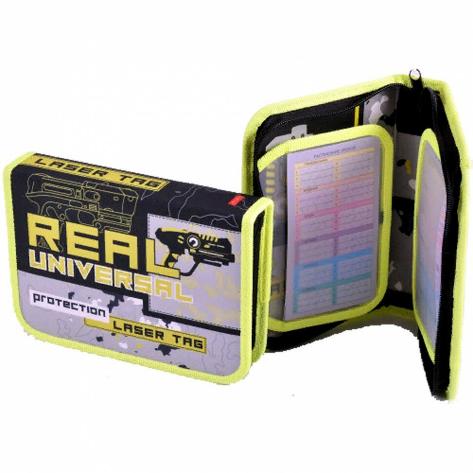 Вместительный практичный пенал для различных пишущих принадлежностей, ластика, линейки и прочих аксессуаров. На откидных планках расположены две карточки для расписания уроков, внутри полноцветный принт, соответствующий дизайну изделия.