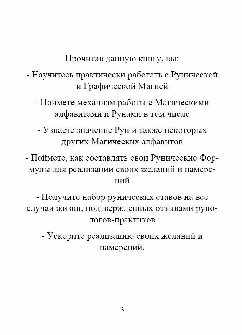 Прочитав данную книгу, вы - научитесь практически работать с рунической и графической магией; поймете механизм работы с магическими алфавитами и рунами в том числе; узнаете значения рун и также некоторых других магических алфавитов; поймете, как составлять свои рунические формулы для реализации своих желаний и намерений; получите набор рунических ставов на все случаи жизни, подтвержденных отзывами рунологов-практиков; ускорите реализацию своих желаний и намерений.