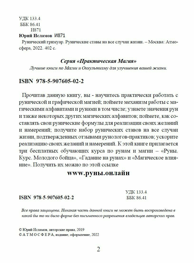 Рунический гримуар Рунические ставы на все случаи жизни (Исламов Юрий Владимирович); Атмосфера, 2022