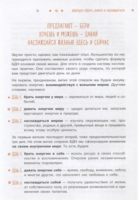 Купила в подарок подруге, но не могла оторваться от заданий, думаю купить и себе. Содержание ежедневника основано на книге Т. Мужицкой, но здесь даны полноценные и просты практики на 72 дня. Для каждой практики свой разворот, можно делать задание прямо в книге. Качество печати и бумаги на высоте, приятно брать в руки, листать, думаю писать тоже будет в радость!