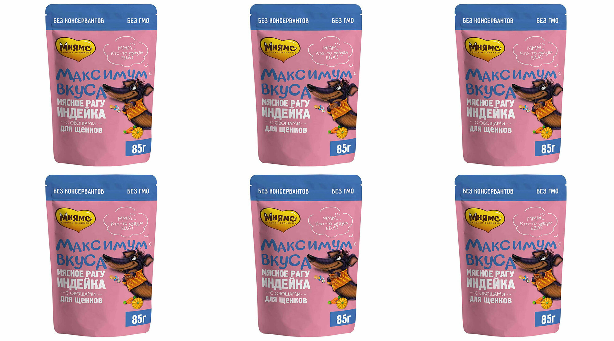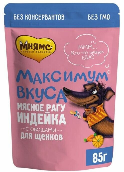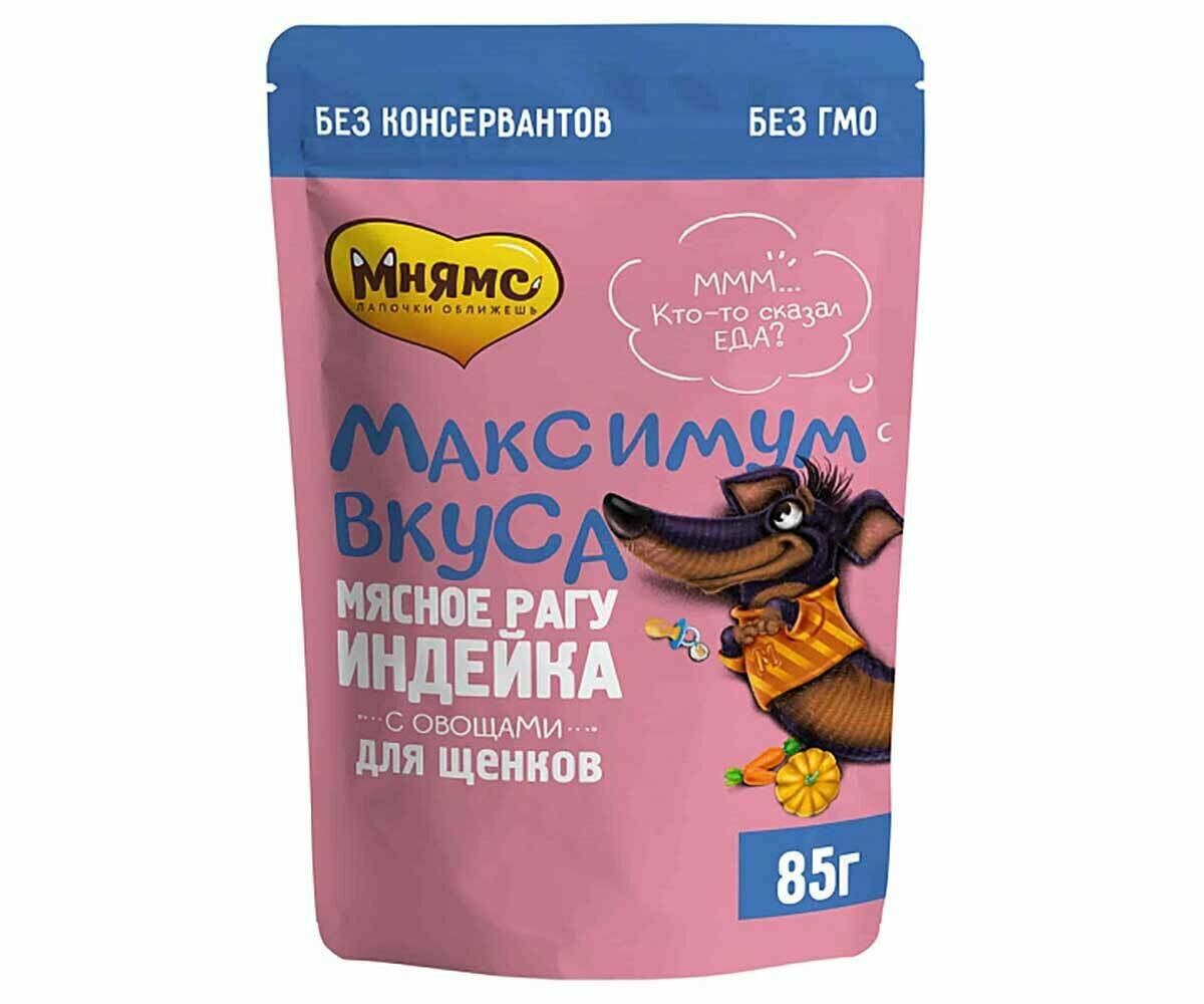 Влажный корм для щенков Мнямс Максимум вкуса мясное рагу с индейкой и овощами 85г