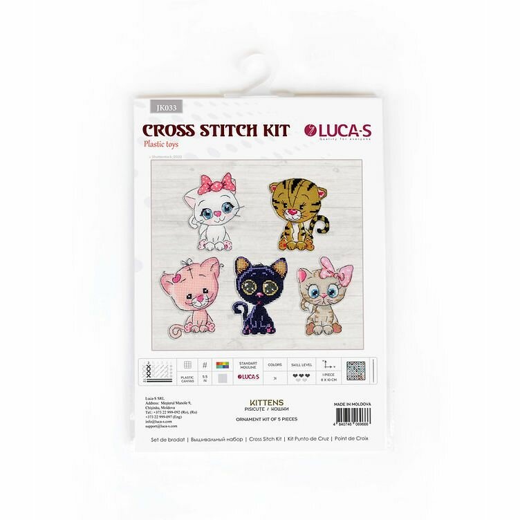 Создайте яркие вышитые сувениры от Luca-S 'Кошки' это увлекательно и просто, достаточно владеть техникой 'крест' и точно следовать инструкции. Пяльцы или рамки не понадобятся пластиковая канва отлично держит форму. Готовые элементы надо вырезать по контуру. При желании к игрушке можно пришить ленту-подвес. Чтобы оформить изнанку, подойдет тонкий фетр или виниловый магнит. В наборе: пластиковая канва 14 (размер канвы А4 - 21х28 см), хлопковое мулине Luca-S, иглы №26 - 2, черно-белая схема, инструкция. Количество цветов: 31. Размер готового сувенира: 8х10 см.