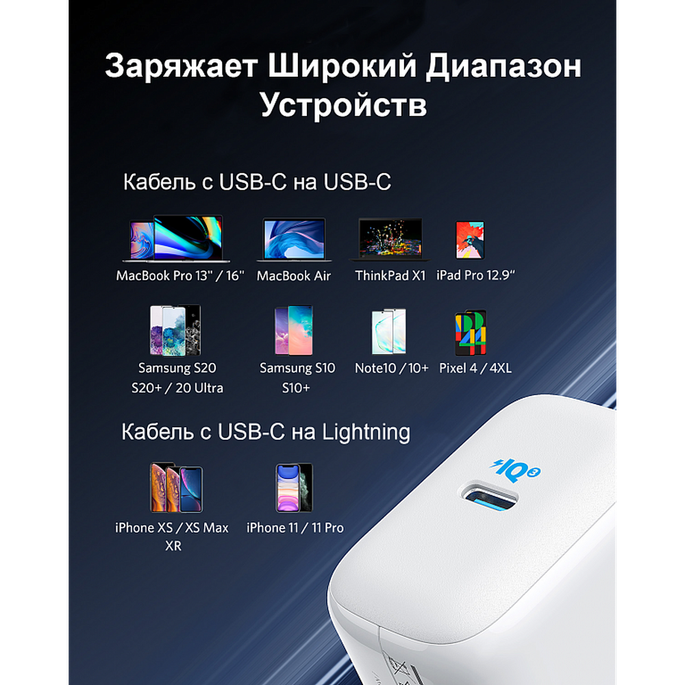 Высокоскоростная зарядка. От iPhone до Samsung, ноутбуков USB-C и многого другого. Фирменная технология Anker PowerIQ 3.0 обеспечивает полноскоростную зарядку практически любого устройства. Универсальная совместимость. Порт USB-C мощностью 65 Вт обеспечивает достаточную мощность для полной зарядки iPhone 11 и более поздних версий до 1, 5 часов быстрее, чем с оригинальным зарядным устройством, и зарядки iPad Pro 11? (2018) или MacBook Pro 16’ всего за 2, 5 часа. Конструкция цилиндра. Минимальный размер с цилиндрической конструкцией, экономящий место на вашей силовой ленте, легко помещается в любую сумку, кошелек или карман. Оптимизирован для путешествий. Легкий и компактный поставляется с 3 сменными штекерами, что позволяет легко заряжать устройства в любой точке США, Великобритании и Европы.