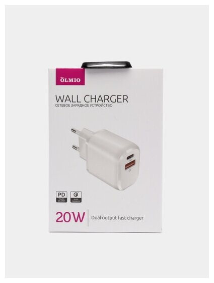 Сетевое зарядное устройство Olmio 043365 Type-C +USB PowerDelivery QuickCharge 20W белый