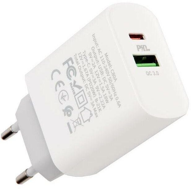 Компактное, но с широким функционалом сетевое зарядное устройство. Основной особенностью является поддержка PD3.0, QC3.0 / QC2.0, для быстрой зарядки. Корпус выполнен из огнестойкого материала PC, ударостойкий и устойчив к механическим повреждениям. Имеется защита от короткого замыкания и перегрева. 2 выходных разъема, оба поддерживают мощность до 18 Вт. Один современного формата USB-C, второй - стандартный USB-A.