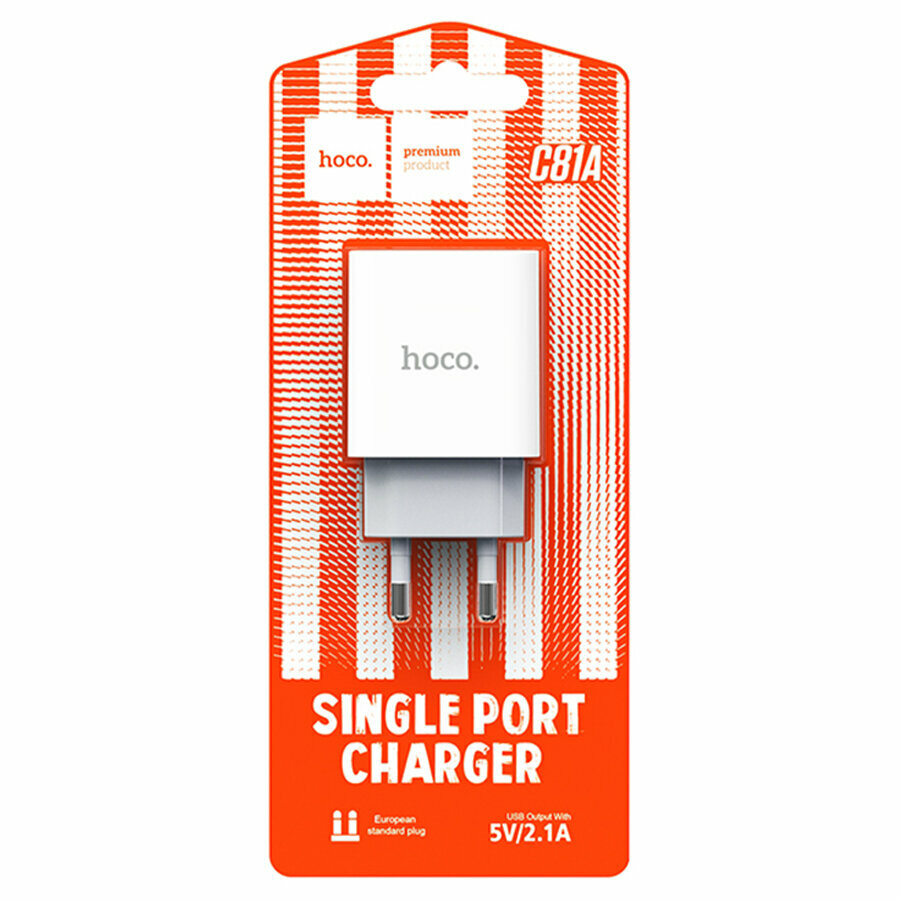 Сетевое зарядное устройство с кабелем HOCO C81A White для зарядки смартфонов на базе Android. Один разъем USB. В комплектацию не входит кабель. Корпус выполнен из белого прочного пластика.