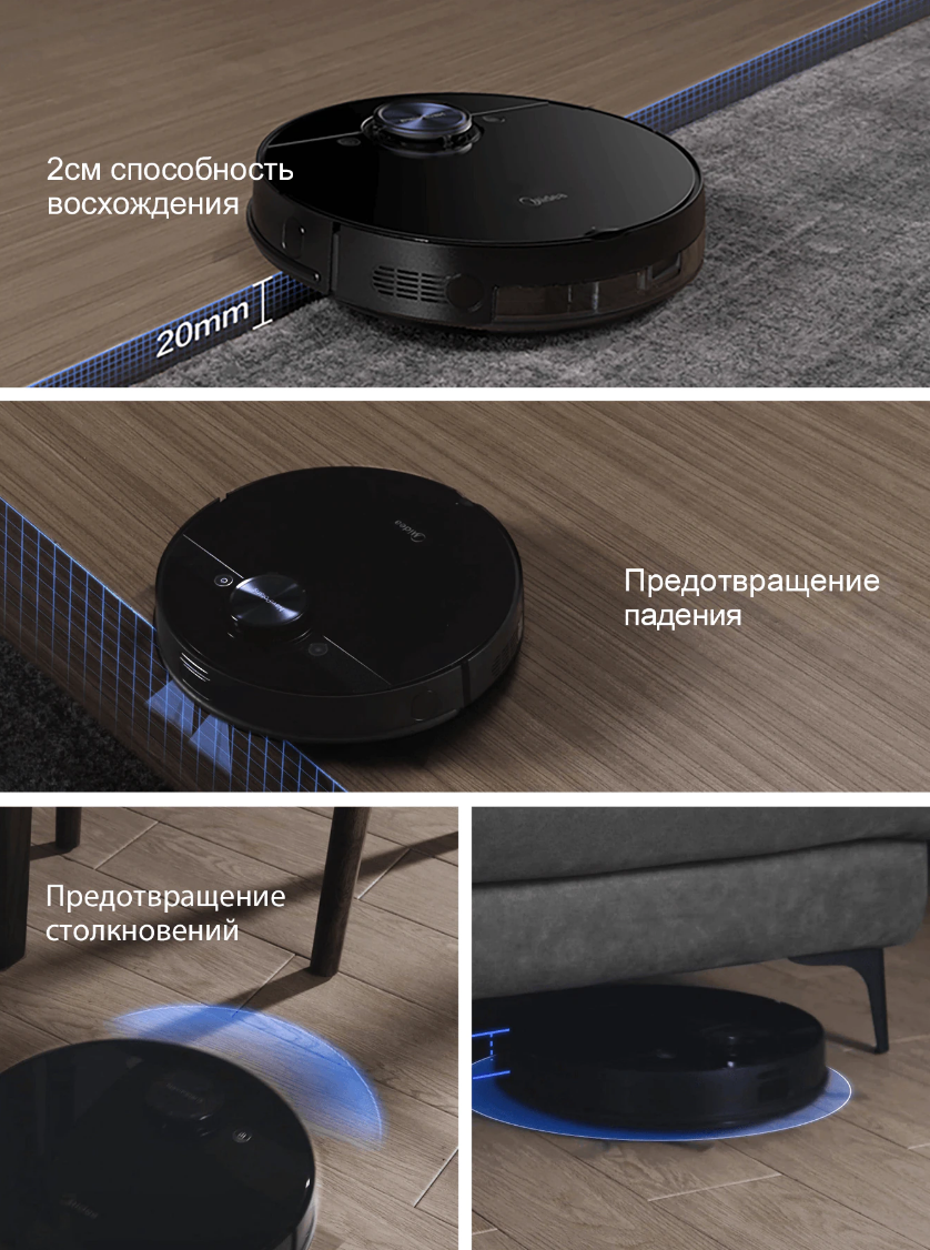 Тонкий профиль и конструкция преодоления препятствий позволяют роботу-пылесосу Midea Robotic Vacuum Cleaner M7 свободно перемещаться по дому и никогда не застревать. Оснащенный множеством датчиков защиты от столкновений и падений, он обеспечивает безопасную уборку без каких-либо повреждений мебели. Кроме того, робот-пылесос может автоматически вернуться к своей зарядной станции, когда батарея разряжена, без какого-либо вмешательства.