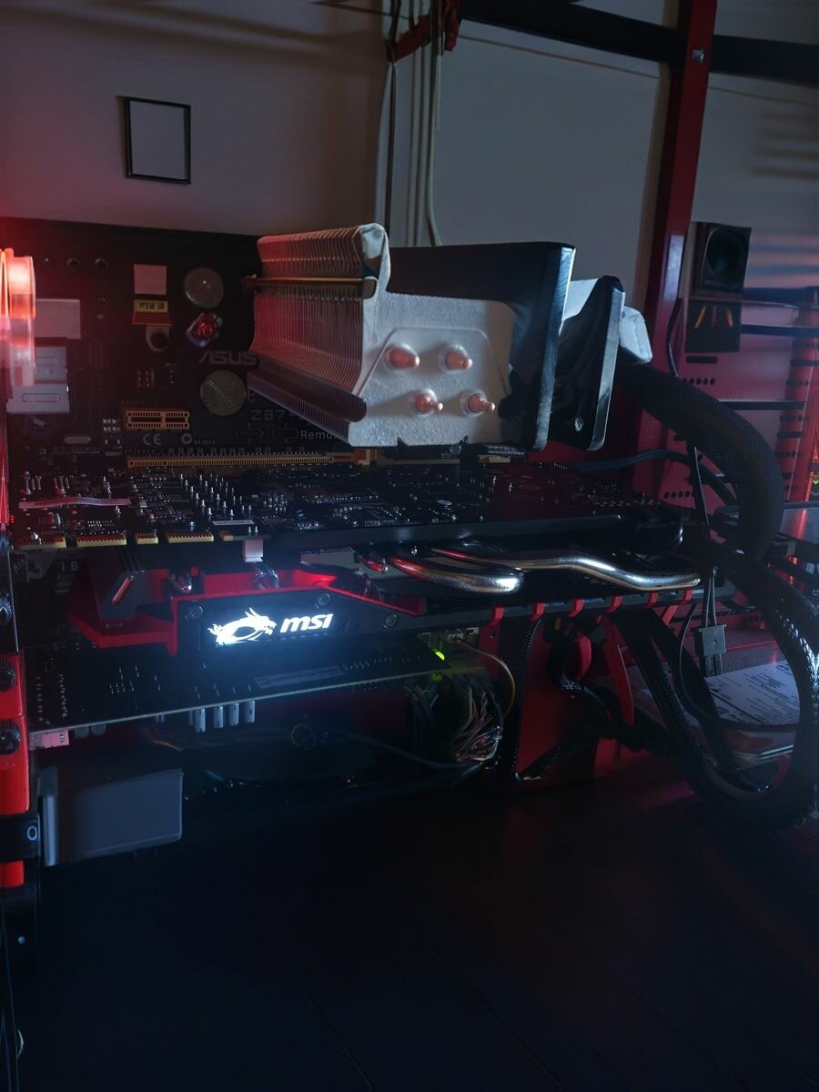 - Дизайн на 5+ , малые габариты , тонкая! Подсветка шикарна. Вентиляторы не крутятся до 60 градусов , то есть абсолютная тишина. В играх частота ядра бустится до 1797мгц