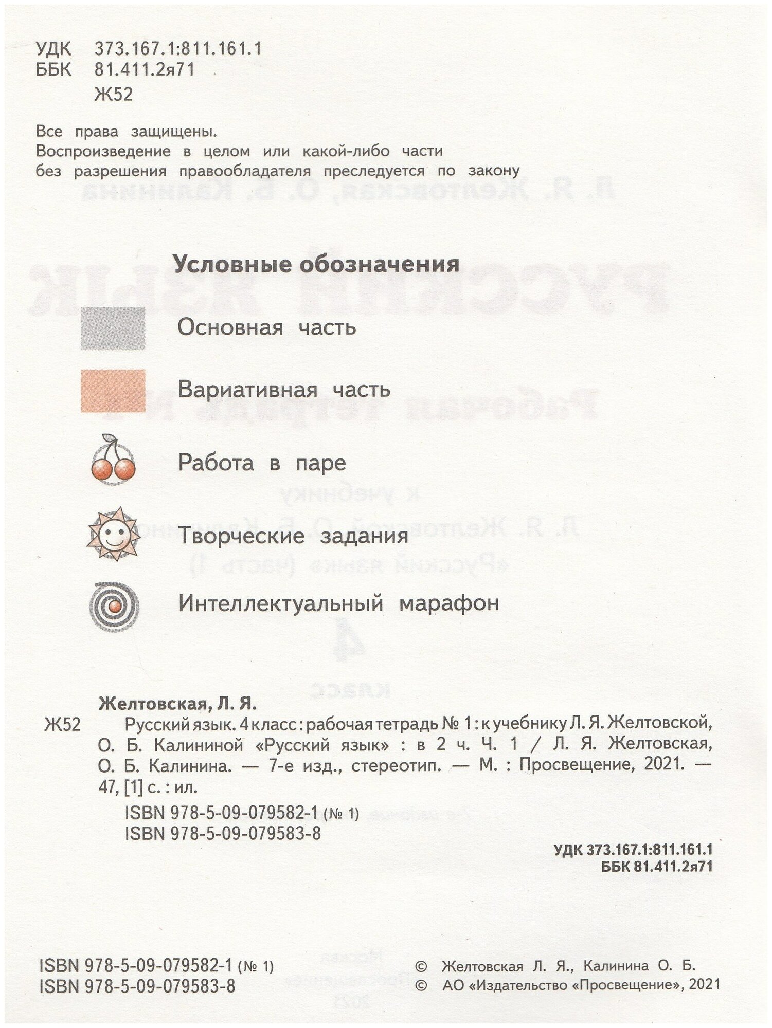 Русский язык 4 класс Рабочая тетрадь 1 к учебнику Л Я Желтовской О Б Калининой Русский язык часть 1 (Ольга Борисовна Калинина, Любовь Яковлевна Желтовская); Дрофа/Просвещение, 2022