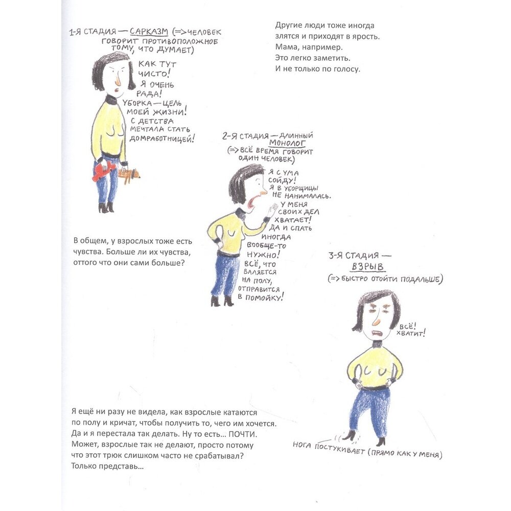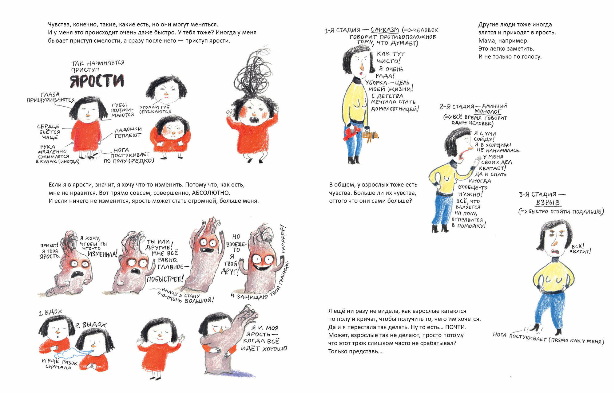 У меня такое чувство, что эта книга о чем-то очень важном:) Мысль о том, что плохих эмоций нет, все нужны и важны, что со своей злостью можно подружиться и что вообще-то она помогает, а не мешает — такая простая, но такая нужная. Как чудесно, что нынешние дети могут узнать об этом совсем в юном возрасте, а не спустя десять самопереосмыслений после душераздирающих истерик в 2 часа ночи:)))