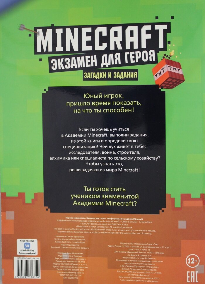 Экзамен для героя Первое знакомство Неофициальное издание Minecraft (нет автора); Издательский дом Лев АО, 2022