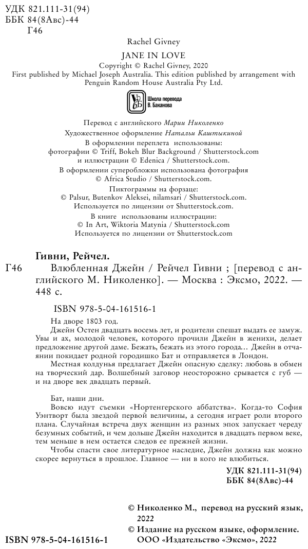 Книга: Влюбленная Джейн (Рейчел Гивни); Эксмо, Inspiria, Редакция 1, 2022