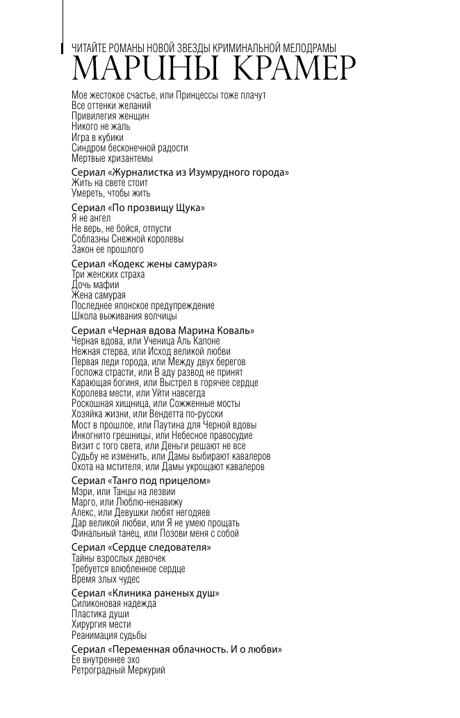 | Серия | Закон сильной. Криминальное соло Марины Крамер |