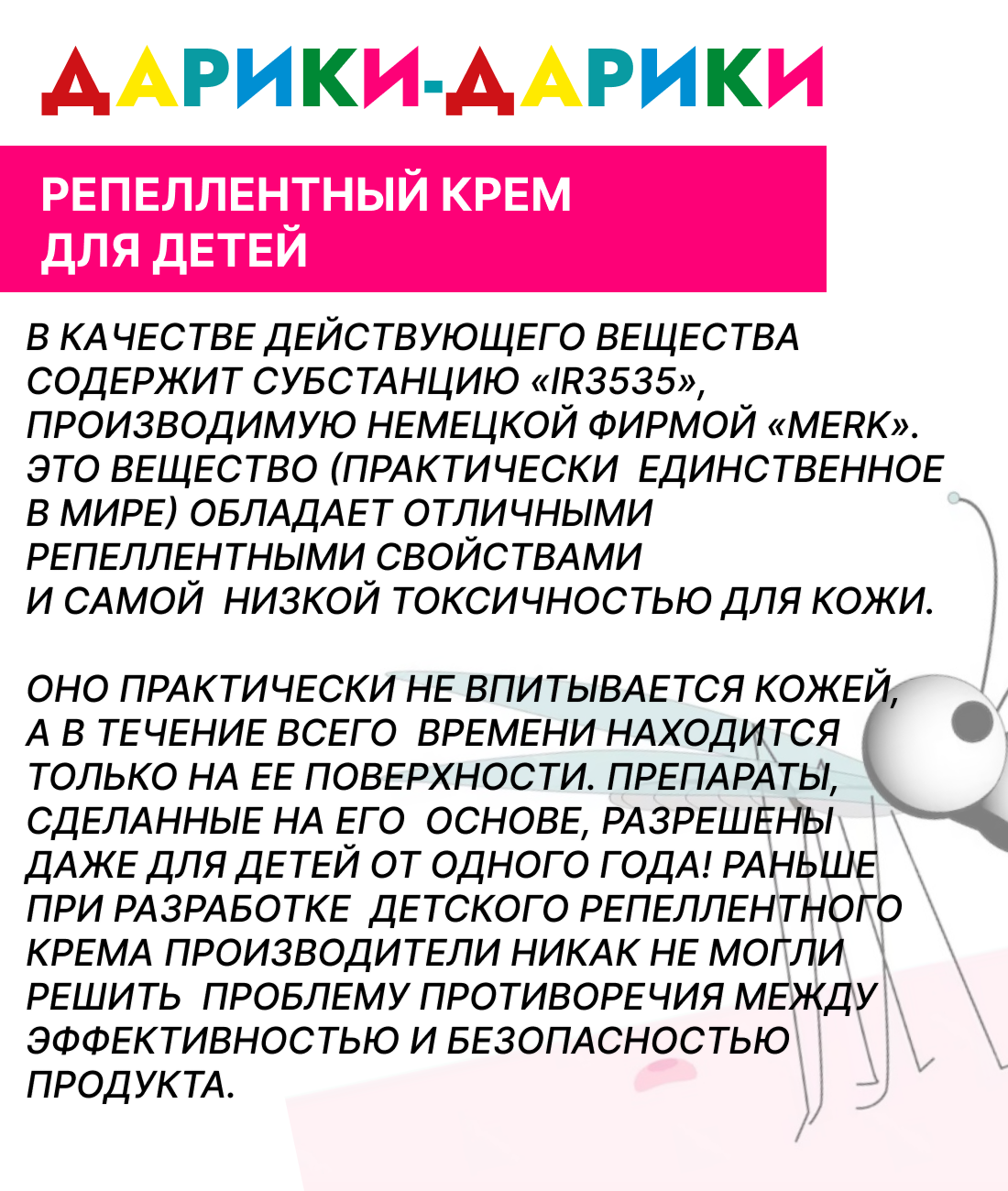 На сегодняшний день товар «Крем Ваше Хозяйство Дарики-Дарики от комаров для детей от 3-х лет 50г» можно купить с кешбеком в 1 магазине: Яндекс.Маркет