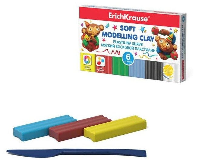 Пластилин Erich Krause восковой мягкий со стеком 6 цветов