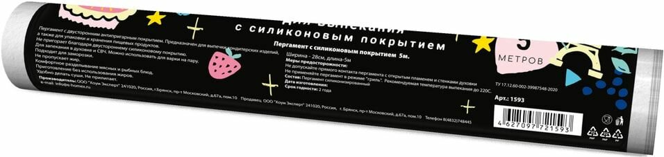 Пергамент с силиконовым покрытием 5 м 28*5" HOMEX» Пергамент для выпекания. Предназначен для выпечки кондитерских изделий, а также для упаковки и хранения пищевых продуктов. Не пригорает благодаря двустороннему антипригарному - силиконовому покрытию. Для запекания в духовке и СВЧ. Можно использовать для варки на пару. Подходит для заморозки. Не пропускает жир. Комфортное разделывание мясных и рыбных блюд. Приготовление без использования жиров.