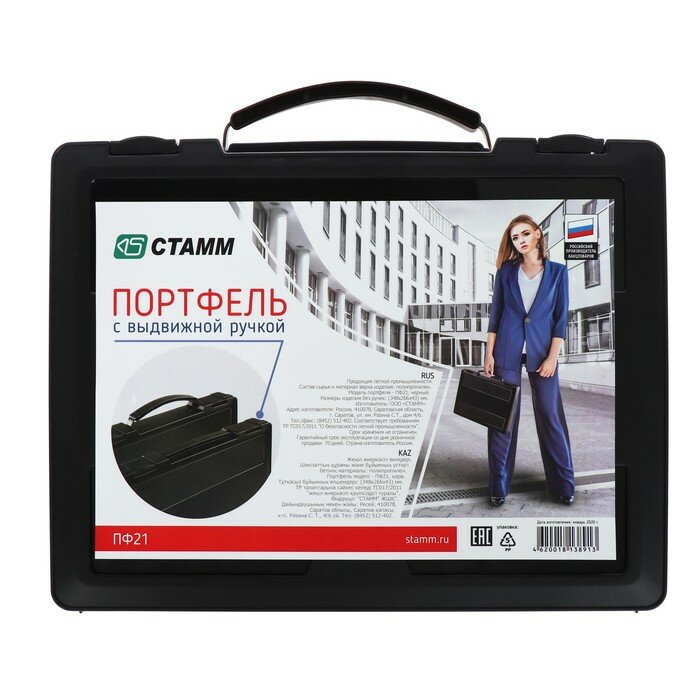 Портфель предназначен для переноса и хранения документации формата А4. Оснащён удобной выдвижной ручкой и двумя надёжными защёлками. Упаковка: пакет с цветным вкладышем.