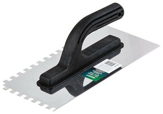 Гладилка зубчатая нержавеющая волат 130 х 270 мм зуб 6 х 6 мм () из нержавеющей стали с пластиковой ручкой предназначена для разравнивания строительной или клеевой смеси. Полотно с зубьями 6х6 мм изготовлено из нержавеющей стали, стойкой к возникновению коррозии. Инструмент обладает удобной для удержания рукояткой. Толщина металла, мм: 0,8. Материал рукоятки: полипропилен.