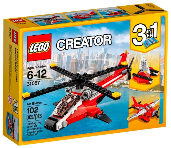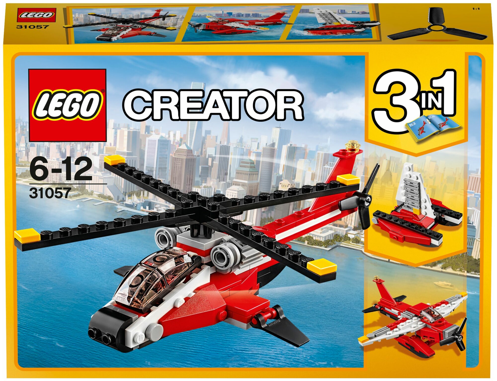 LEGO Creator Красный вертолет - набор, который сможет заинтересовать юного исследователя. Стоит только собрать все детали воедино, как в его распоряжении окажется мощный вертолет! Скорее запрыгивай в тонированную кабину, включай двигатели для того, чтобы оставить взлетно-посадочную полосу внизу и нестись навстречу облакам! Для разнообразия игровых сюжетов модель легко трансформируется в классический гидросамолет или скоростной катамаран.
