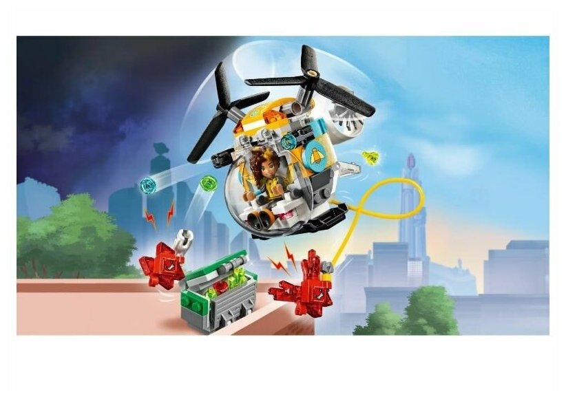 LEGO DC Super Hero Girls Вертолёт Бамблби - желанный подарок для юной поклонницы историй про супергероинь. Криптомиты хотят раздобыть новые кристаллы для того, чтобы породить на свет еще больше опасных и злобных монстров! Отважная Бамблби летит в своем самолете, чтобы разрушить их планы! Помоги ей обстрелять злодеев из шипометов и спасти драгоценные кристаллы!