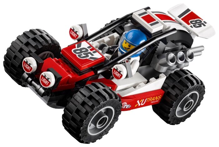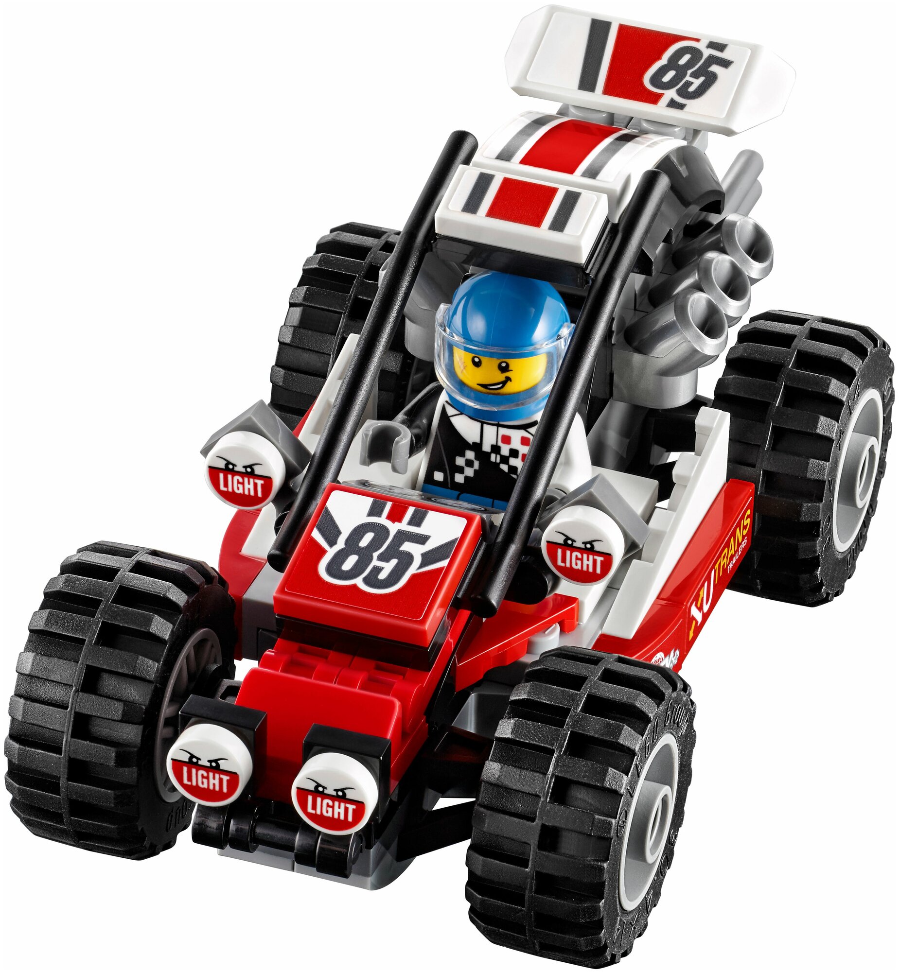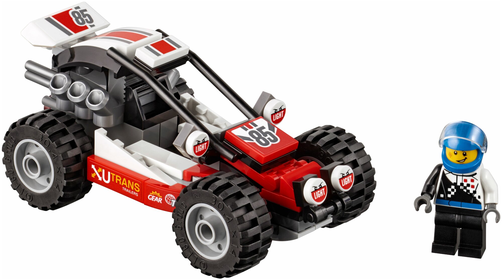 LEGO City Багги - набор, который сможет заинтересовать юного исследователя. Собственными руками ему предстоит собрать классный багги, на котором можно будет поучаствовать в захватывающих гонках! Но не забывай о безопасности: сперва проверь состояние шин и мотора, затем скорее надевай шлем и закрой защитную клетку, чтобы начать напряженное испытание!