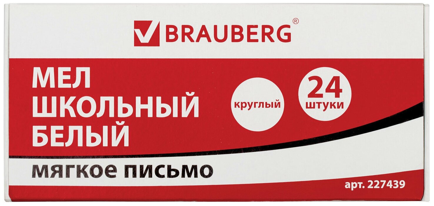 мел белый BRAUBERG 24шт круглый мягкое письмо (227439)