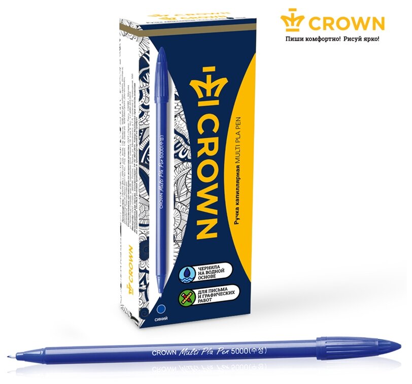 Синяя ручка Crown MultiPla это капиллярная ручка, тонкопишущий фломастер и чертежный инструмент одновременно! Диаметр пишущего узла ручки - 0,3 мм, а длина письма - 700 м. Светостойкие чернила на водной основе не выцветают под воздействием солнечных лучей и легко отстирываются с одежды. Капиллярные ручки Crown MultiPla до 14 дней не высыхают без колпачка, а при закрытом колпачке в течение 10 часов восстанавливают свои свойства! Наконечник изготовлен из фетрового материала с добавлением акрила и имеет металлическую цангу. Чернила мгновенно высыхают на бумаге, поэтому надписи и рисунки не размазываются.