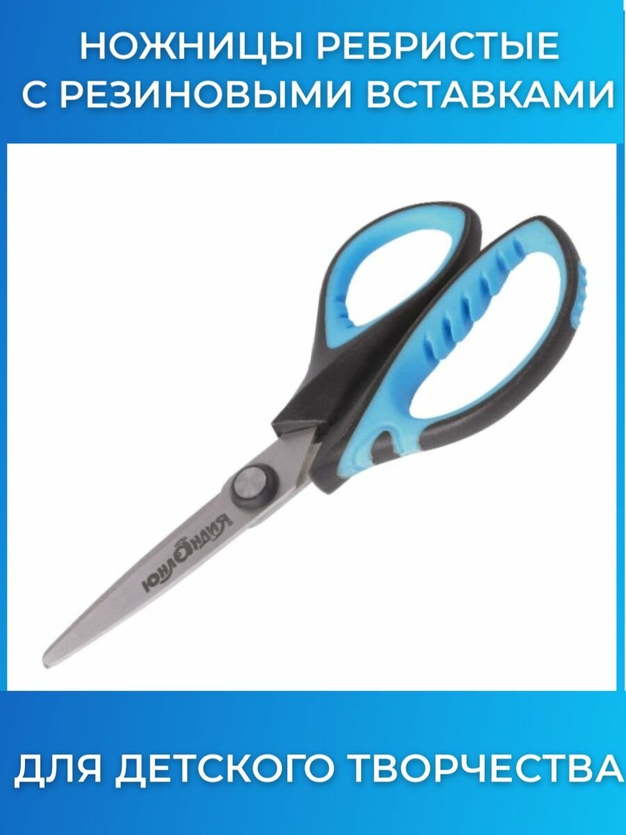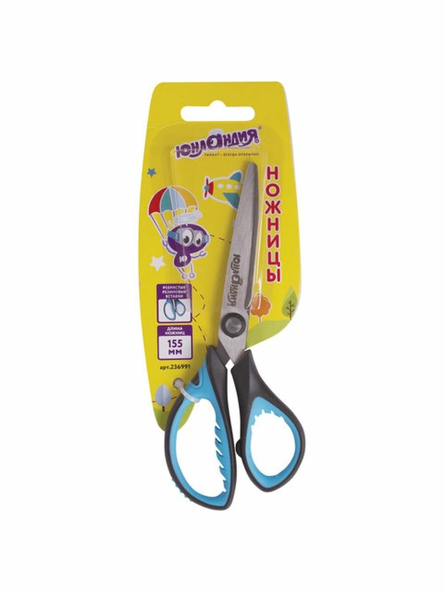 Ножницы юнландия разработаны специально для детского творчества. Техника работы этим инструментом требует координации обеих рук, так как они одновременно выполняют разные движения. Это положительно влияет на развитие мелкой моторики и образного мышления. Ножницы юнландия с эргономичными ручками помогают уменьшить нагрузку на руку ребенка при интенсивной и продолжительной работе, а ребристые резиновые вставки яркого голубого цвета не позволяют пальцам скользить во время использования. Ребенок без труда сможет пользоваться такими ножницами, так как их длина - 155 мм. Закругленные концы гарантируют безопасность при использовании ножниц по назначению. Лезвия изготовлены из прочной нержавеющей стали, что обеспечивает максимально долгий срок службы и аккуратное разрезание разных видов материалов. Предназначены для правши. Длина: 155 мм; Тип ножниц: для правши; Серия: BASIC; Закругленные концы: да; Цвет: голубой/черный; Ручки: эргономичные; Материал ручек: пластик с резиновыми вставками; Материал лезвия: нержавеющая сталь; Упаковка: картонный европодвес;