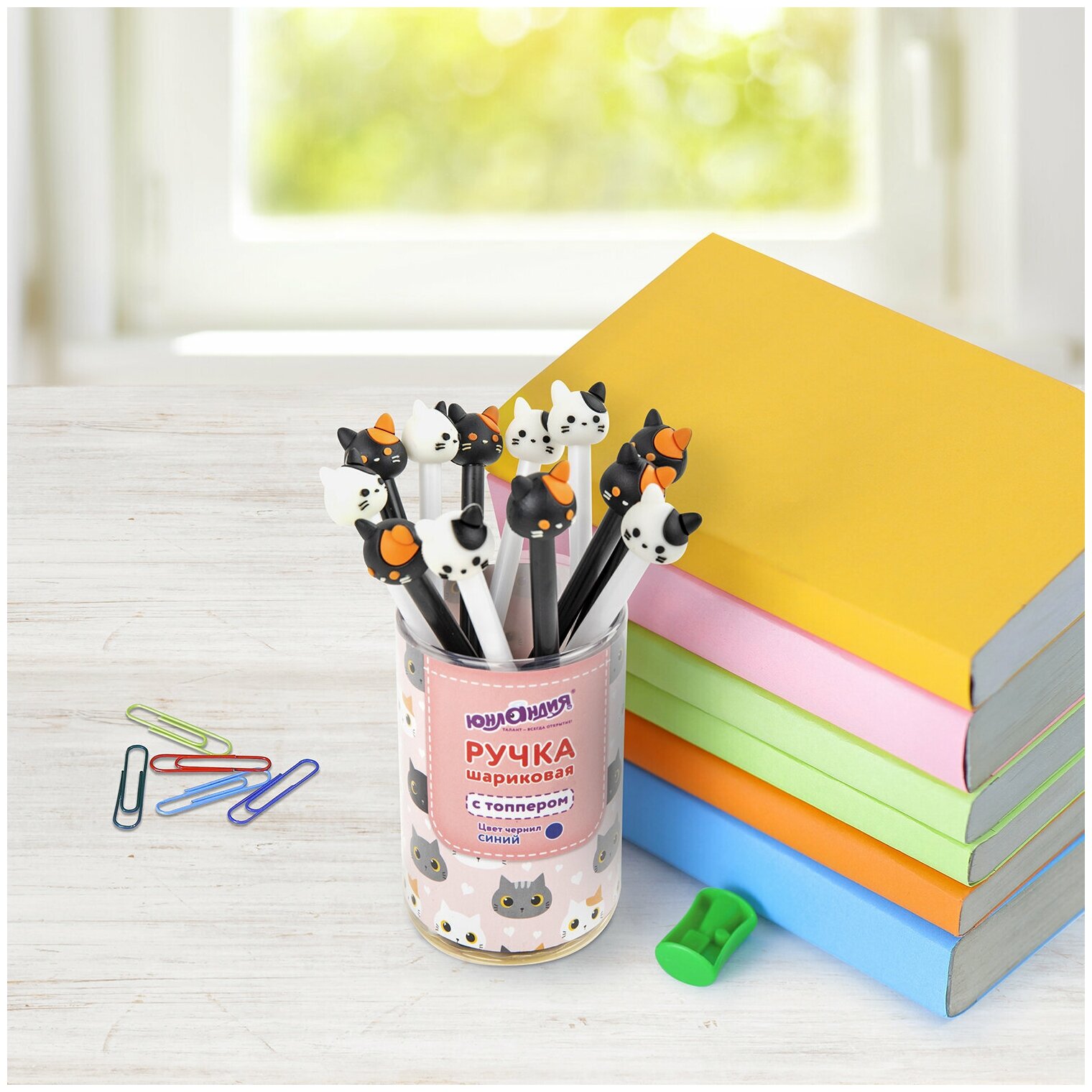 ручка шариковая синяя ЮНЛАНДИЯ Funny Topper Кошка 035мм в асс-те 143804