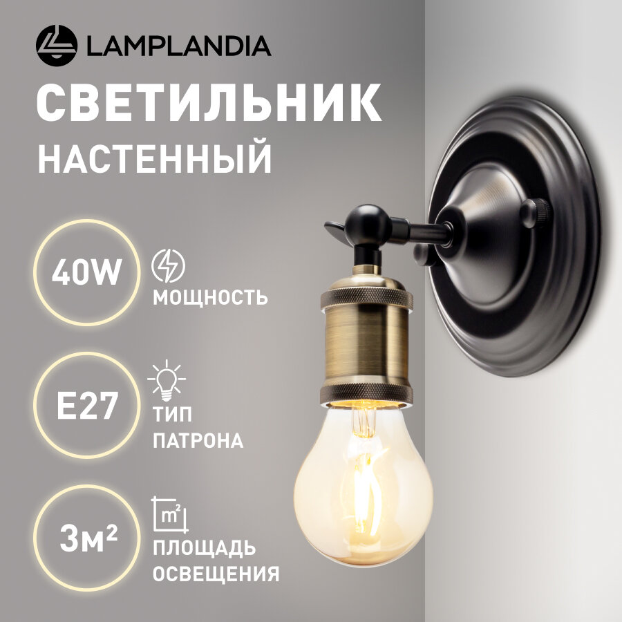 На сегодняшний день товар «бра LAMPLANDIA Damper 1х40Вт E27 металл черный (L1528)» можно купить с кешбеком в 1 магазине: Яндекс.Маркет