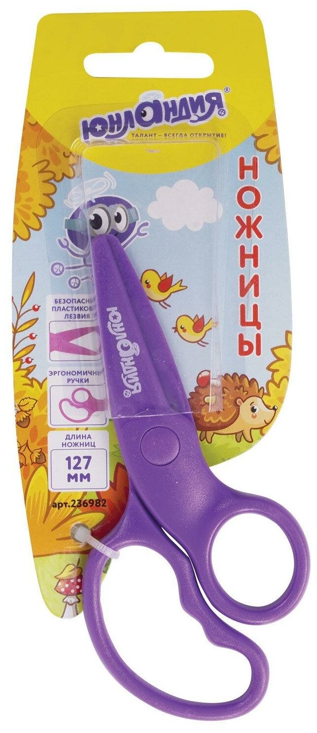 Ножницы ЮНЛАНДИЯ идеально подойдут для детского творчества. Они абсолютно безопасны даже для самых маленьких. Благодаря специальным пластиковым лезвиям, ножницы не повреждают кожу, волосы или одежду, режут только бумагу и картон. Ножницы ЮНЛАНДИЯ с эргономичными ручками помогают уменьшить нагрузку на руку ребенка при интенсивной и продолжительной работе. Ребенок без труда сможет пользоваться такими ножницами, так как их длина - 127 мм. Закругленные концы гарантируют безопасность при использовании ножниц по назначению. Лезвия изготовлены из прочного качественного пластика, что обеспечивает максимально долгий срок службы. Предназначены для правши. Поставляются в нескольких вариантах цвета (без возможности выбора).