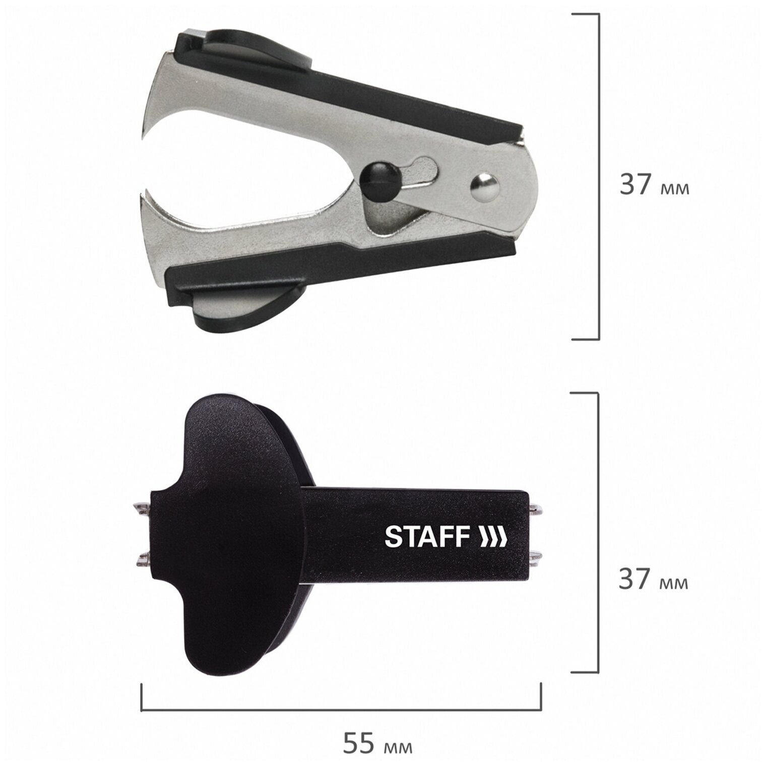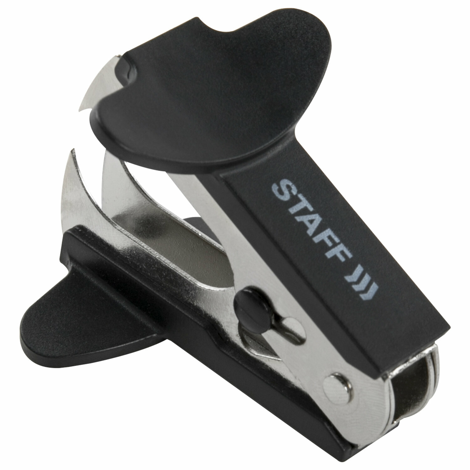 Антистеплер STAFF предназначен для удаления скоб 10 и 24/6. Рабочий механизм антистеплера выполнен из металла, корпус из пластика черного цвета. Позволяет разжать закрепленные скобы, не нанося повреждений ни материалу, ни кончикам пальцев.